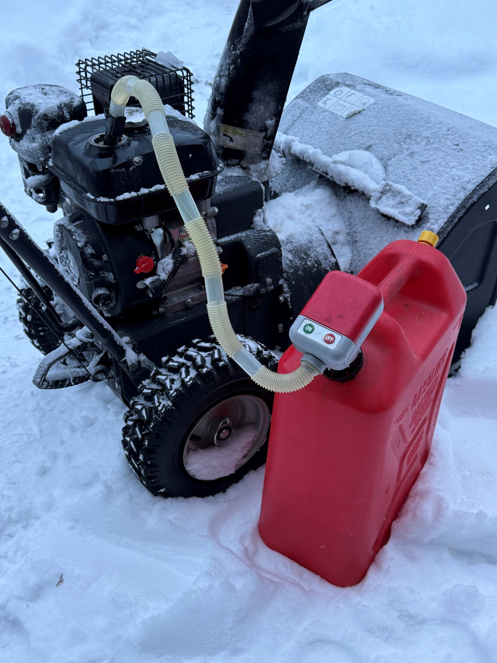 Bestselger! Batteridrevet drivstoffpumpe som gjør påfylling på bil, snøfreser, gressklipper, snøscooter, traktor, atv, båt etc. fra kanne til en lek!
