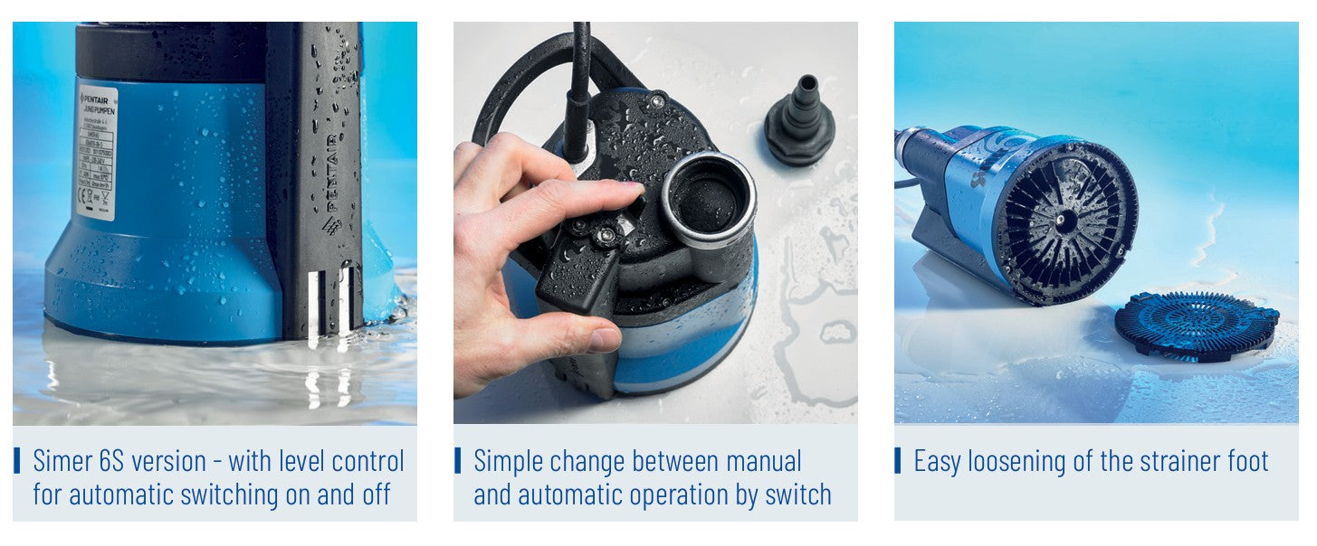 Takket være den integrerte elektroniske vannivåsensoren, slår pumpen seg automatisk på fra en vannstand på bare 5 mm.
